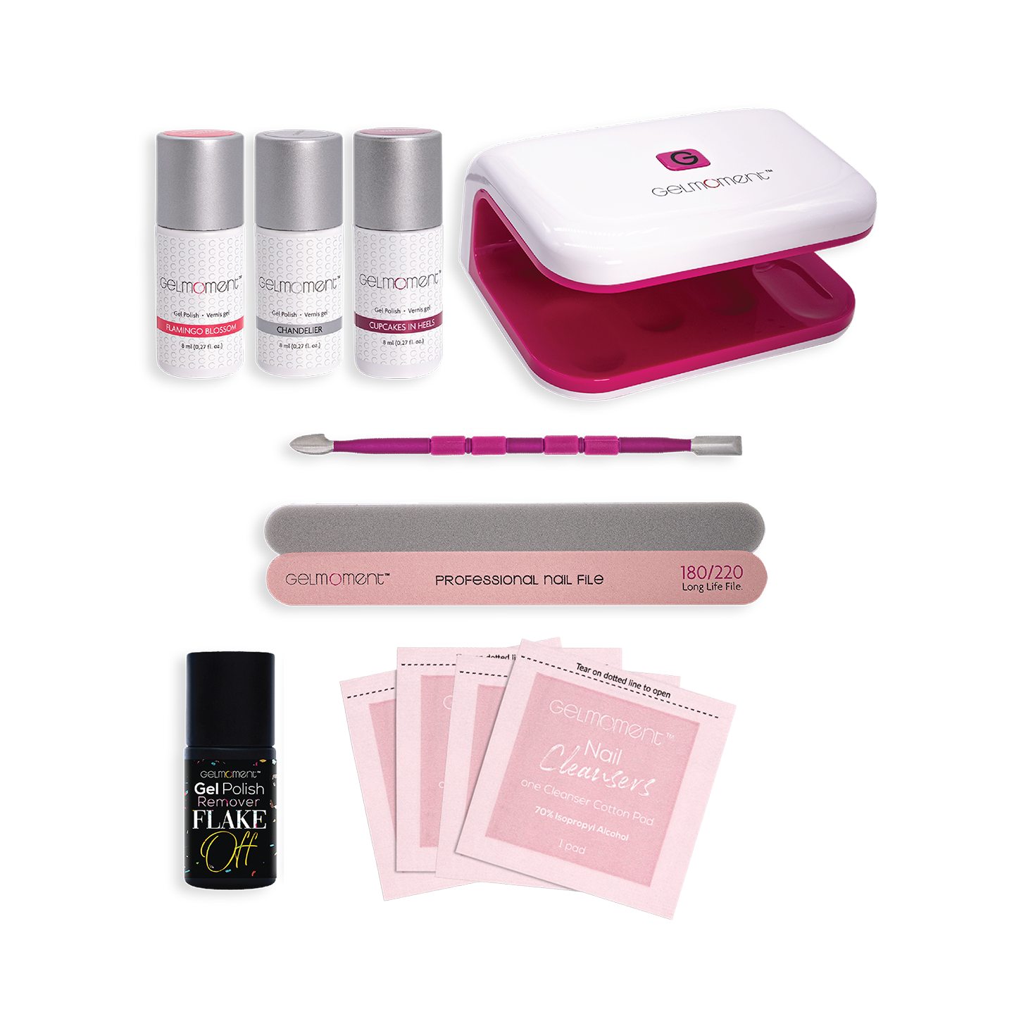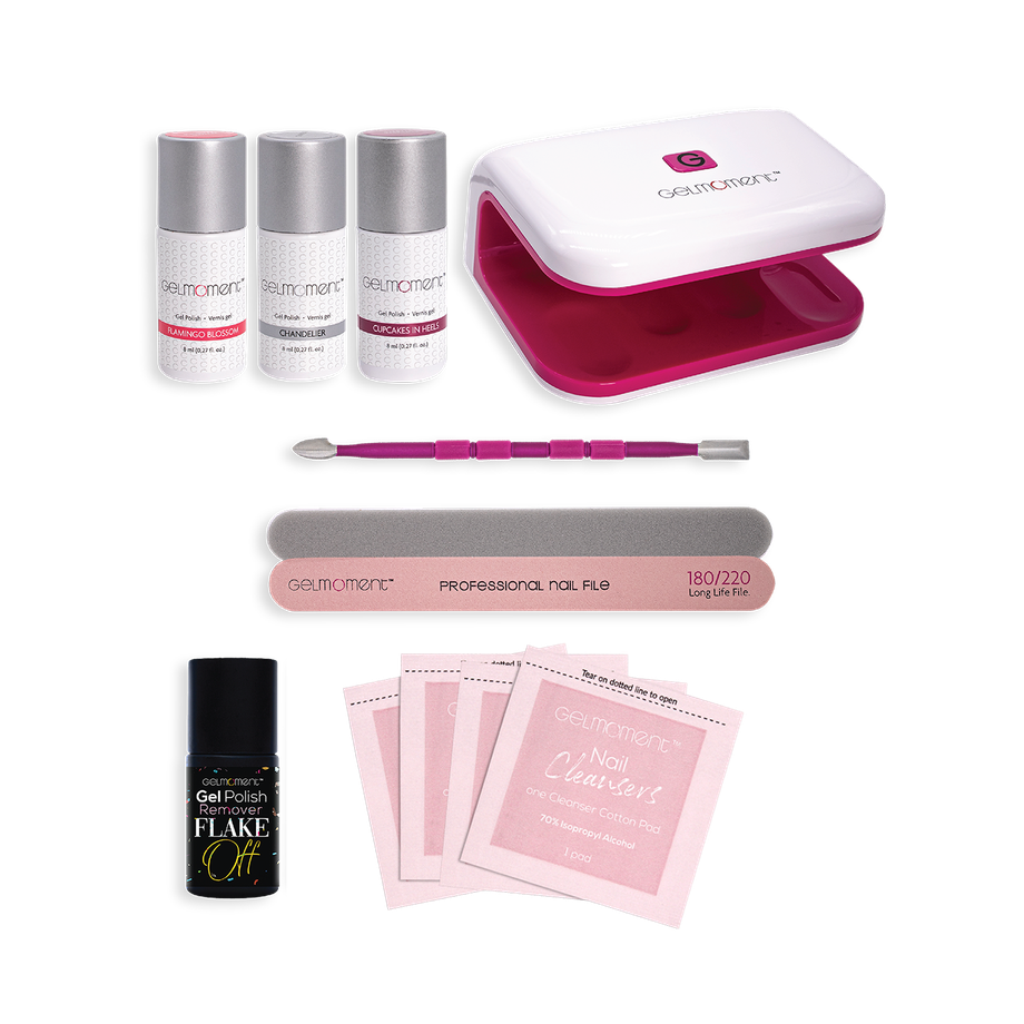 The Premium Customer Kit is designed for those who are comfortable in applying GelMoment Gel Nail Polish and are ready to use our Professional Four Finger Lamp. It comes with your choice of 3 colours and plenty of accessories needed for proper application and removal of our Gel Polish.