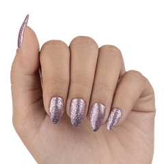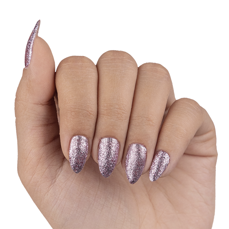 Silver rose. Metallic foil sparkle. Opaque. Cool undertone.